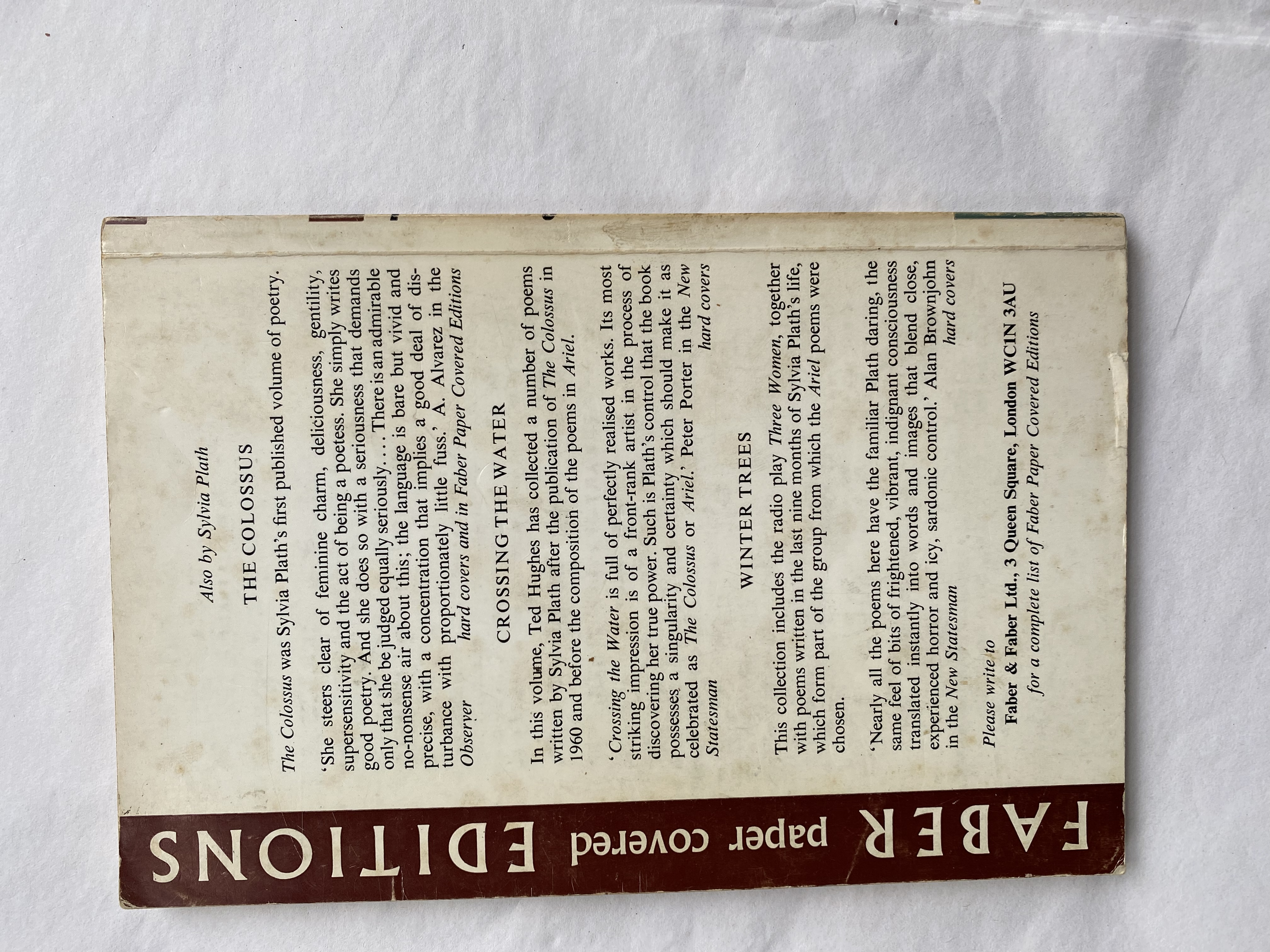 Add to basketReprint. Faber paper covered editions. Very good example. This is the second book of poetry by Sylvia Plath, originally published in 1965, two years after her death by suicide.
