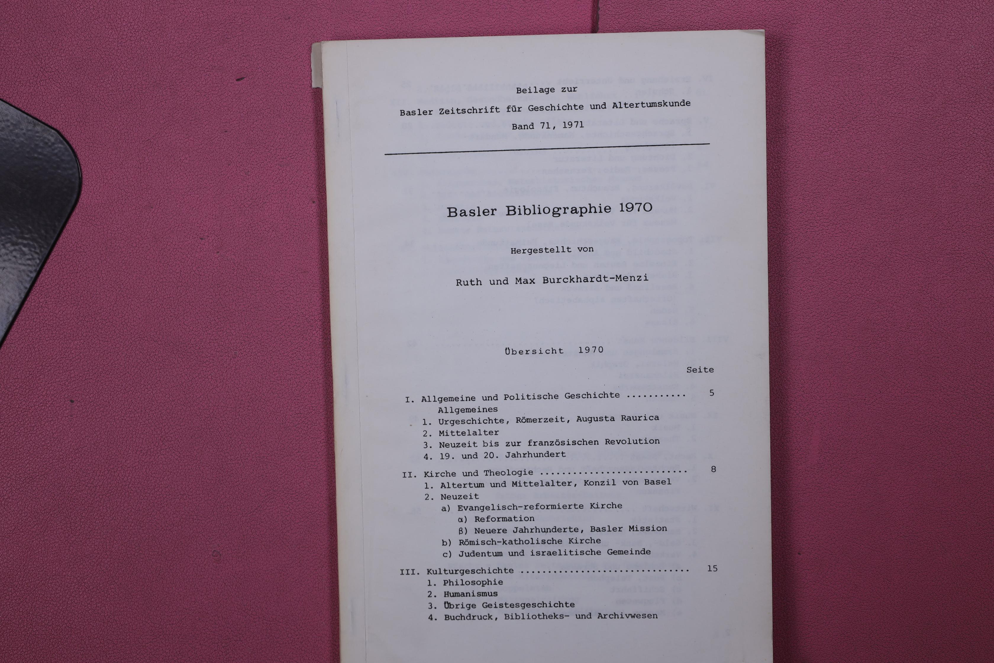 BASLER BIBLIOGRAPHIE 1970.