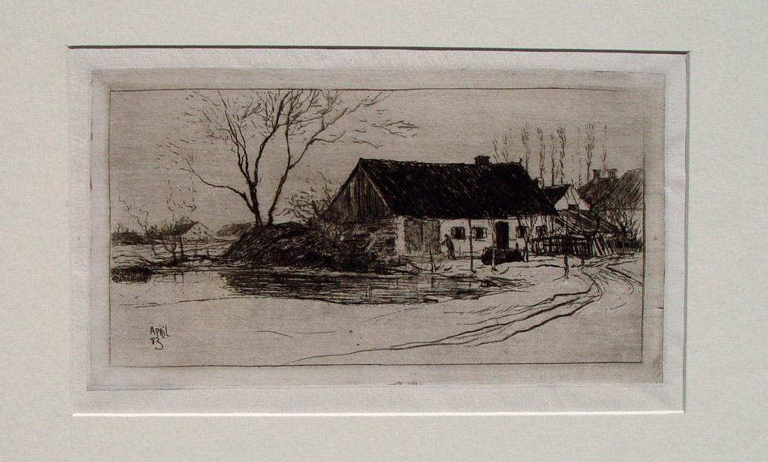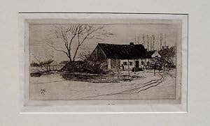 "Bauernhaus" originale Radierung über Tonplatte ca. 14x25cm (Darstellung/Image size) auf Japan (ca.25x36m) in der Platte datiert "April (18)83"