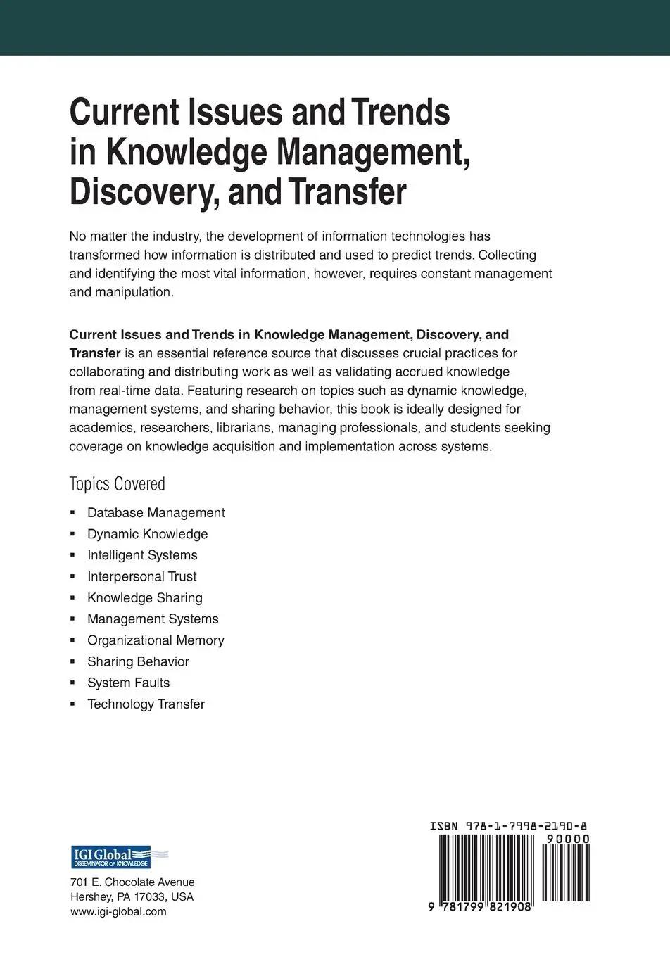 Current Issues and Trends in Knowledge Management, Discovery, and Transfer