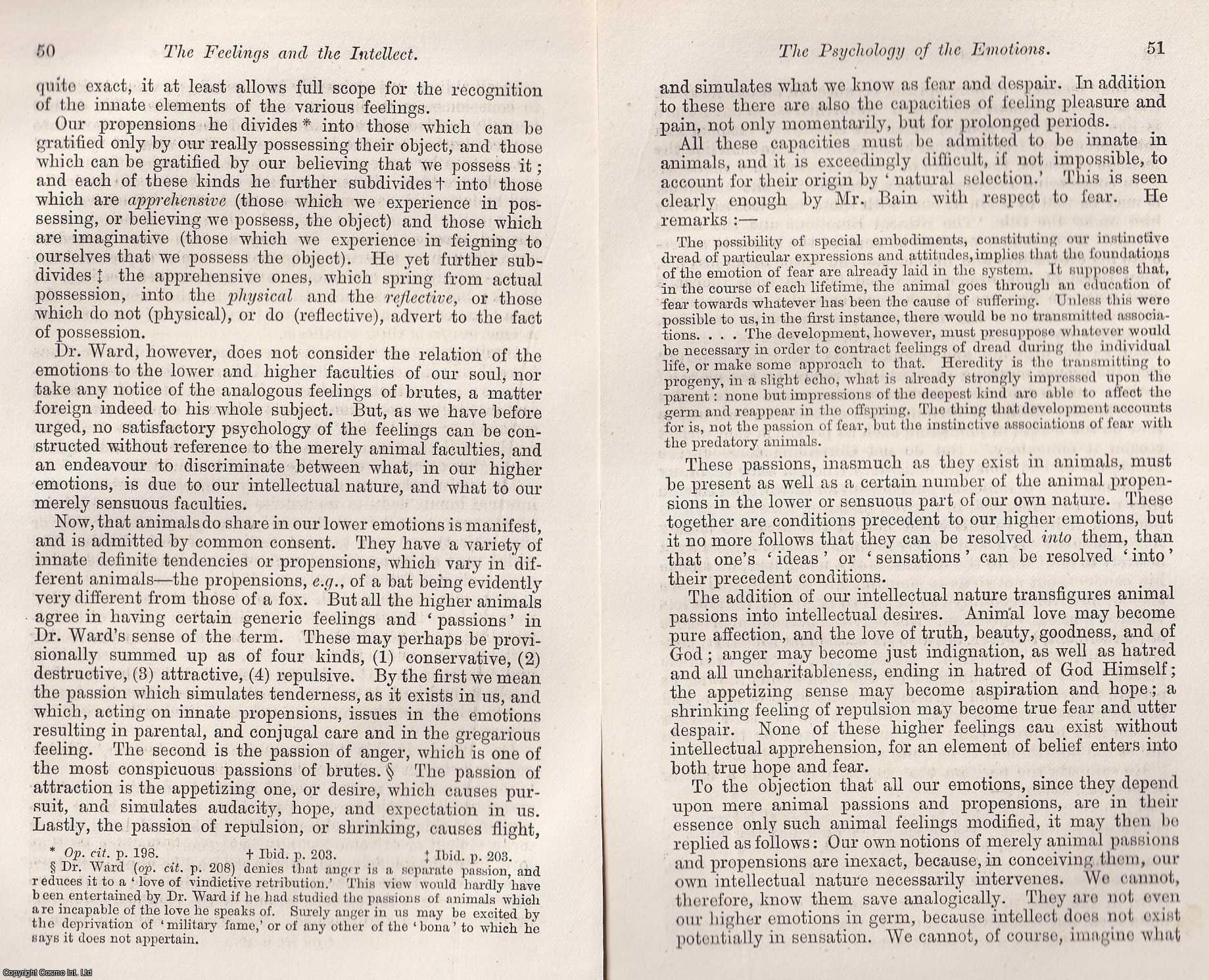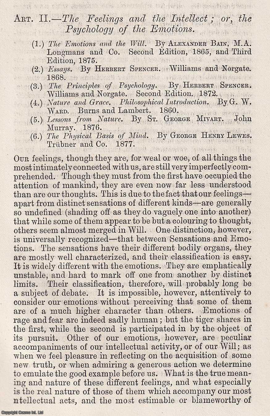 The Feelings and the Intellect; The Psychology of the Emotions : A 19th century investigation into the workings of the mind, tracing how thought and passion shape human behaviour. An article printed in 1879, written by a British Quarterly Review contributor : 35 pages.