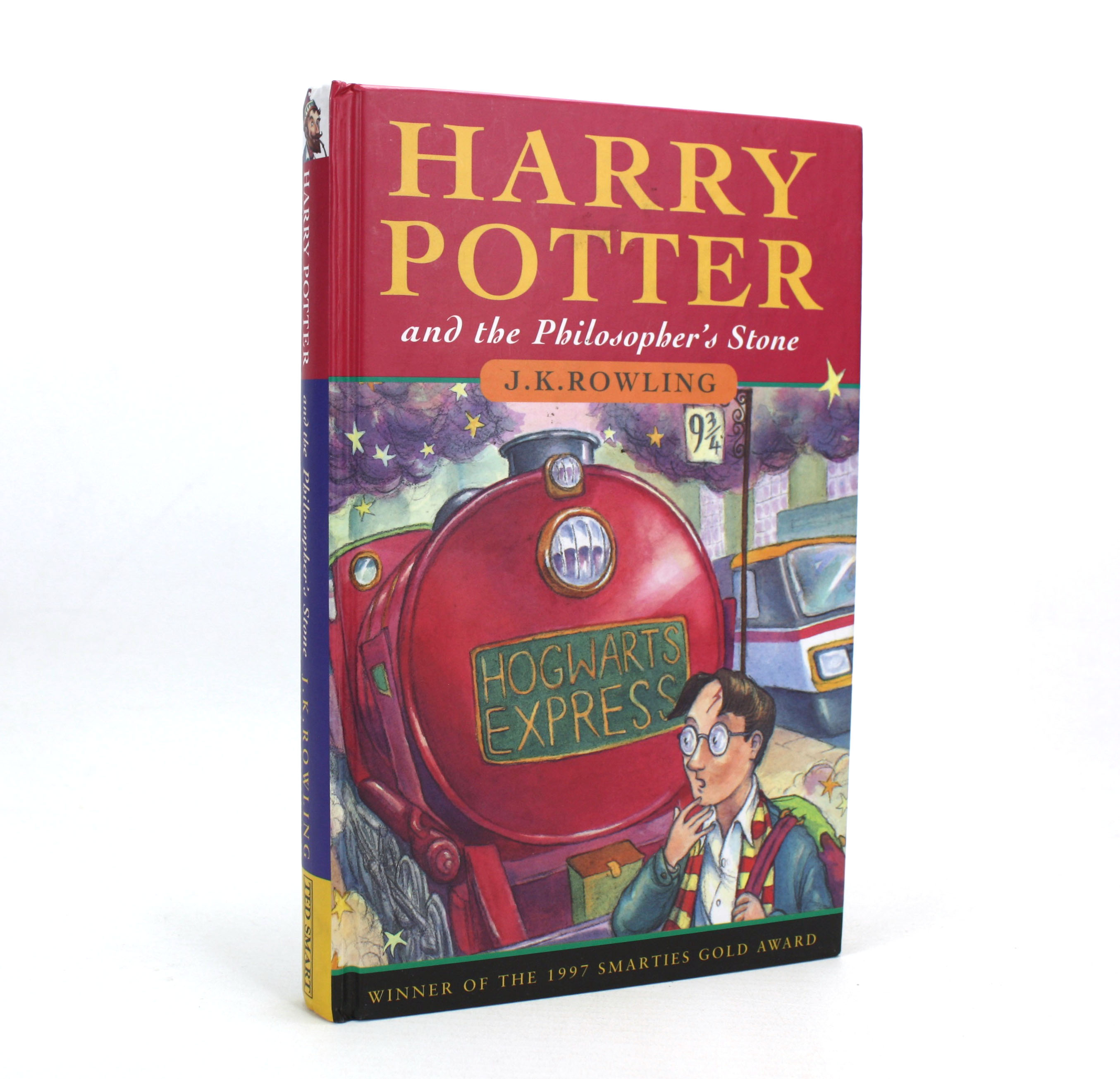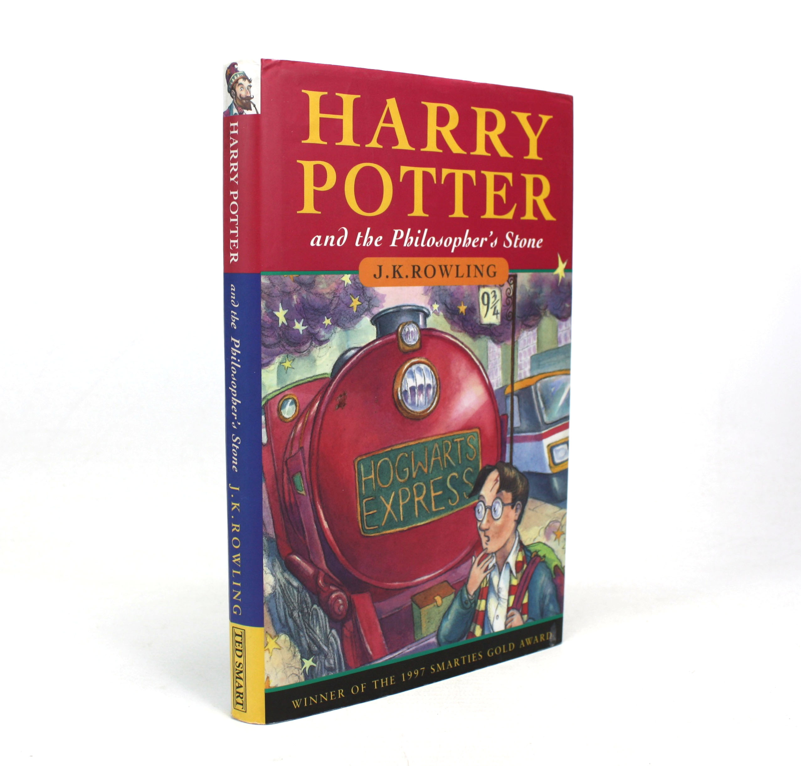 A desirable early printing of Harry Potter and the Philosopher's Stone. This publishing phenomenon was first released to the world in 1997. As early as May 1998, Bloomsbury Publishing produced a version of the book for Ted Smart/The Book People'. This was an independent book distribution company that sold books via a self-employed sales force, who would visit customers at their workplaces and sell to them directly. Ted Smart editions were known to cease in April 2001. Harry Potter and the Philosopher's Stone By J.K. Rowling. This edition produced for The Book People Ltd, 1998. Third impression. Key issue points; Ted Smart logo on yellow background at lower spine edge of dustjacket and the printed book, 'Smarties Gold Award' banner to lower edge of jacket and printed book cover, and Publisher's impression line of 10 9 8 7 6 5 4 3. A near fine hardback copy in a near fine dustjacket. The jacket is protected with a removable clear plastic wrap. Slight wear to extremities. Not price clipped. The book itself has printed paper covers, the colours remain vibrant and true. Some minor shelf wear marks. All soundly bound. Text is bright and clear throughout. No owner's inscriptions or marks. A nice copy, of an early printing, of the world's favourite children's book. Text in English. 223pp. Weight approximately 312g (unpacked). Approximate dimensions: 205mm high x 137mm wide x 22mm deep. More photos on request. Seller Inventory # LAN9504