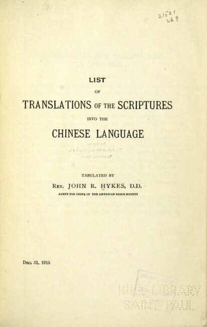 List of translations of the scriptures into the Chinese language