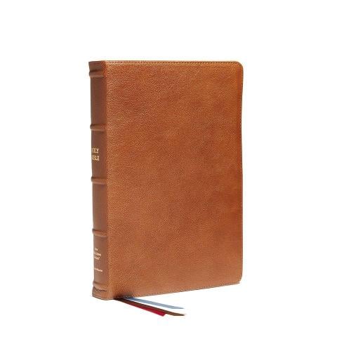 NKJV, Reference Bible, Classic Verse-by-Verse, Center-Column, Premium Goatskin Leather, Brown, Premier Collection, Red Letter, Comfort Print (Leather)