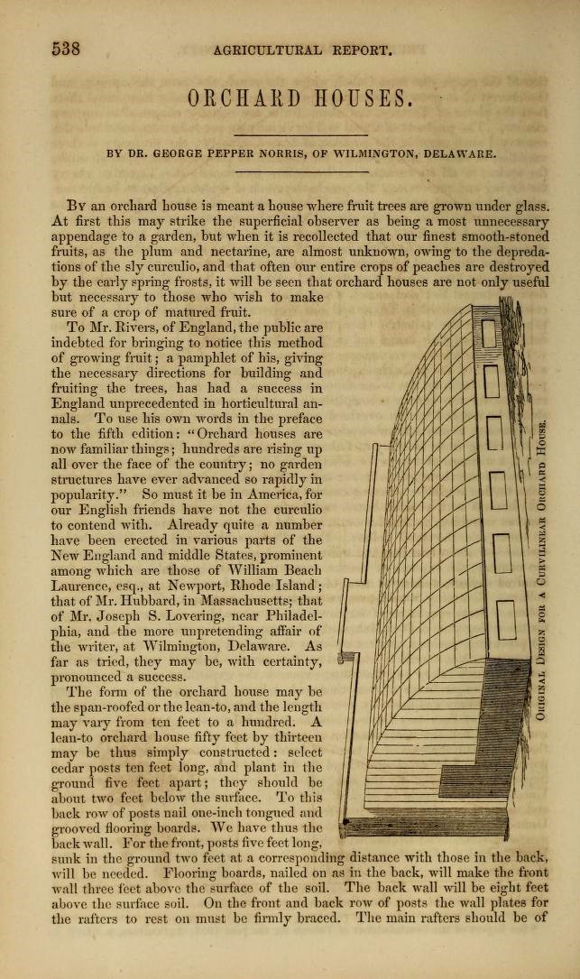 Add to basket4pp extract, illustrated, salvaged from a damaged copy of the Report Of The Commissioner Of Patents For The Year 1861: Agriculture. Green houses. Housed in protective mylar report cover.
