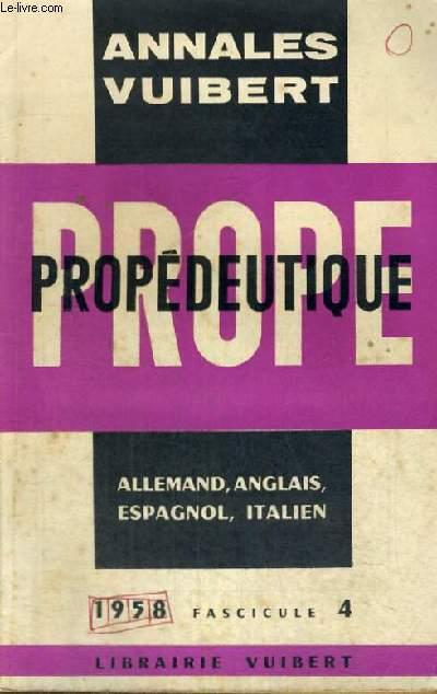 PROPEDEUTIQUE - ALLEMAND,ANGLAIS,ASPAGNOL,ITALIEN - 1958 FASCICULE 4 - ANNALES VUIBERT