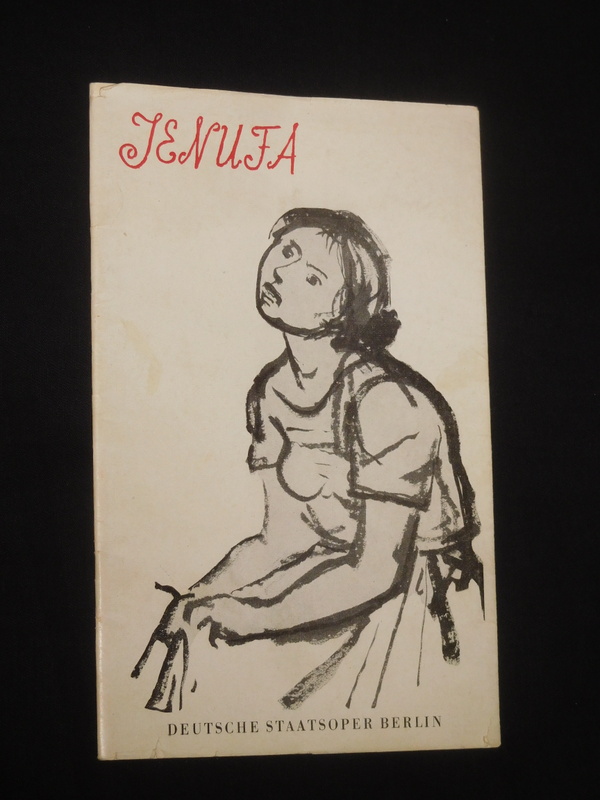 Programmheft Deutsche Staatsoper Berlin 1956. JENUFA von Preissova, Brod (Übersetzung), Leos Janacek (Musik). Musikal. Ltg.: Hans Löwlein, Insz.: Wolf Völker, Peter Neitsch, Ausstattung: Heinz Pfeiffenberger. Mit Hedwig Müller-Bütow (Jenufa), Elisabeth Aldor, Erich Witte, Julius Katona, Irmgard Klein, Eugen Fuchs, Kay Willumsen, Adelheid Müller-Heß