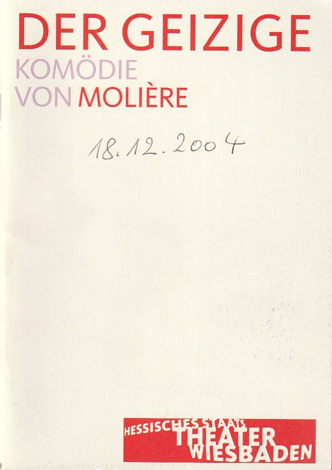 Title: Programmheft Moliere DER GEIZIGE Premiere 18...