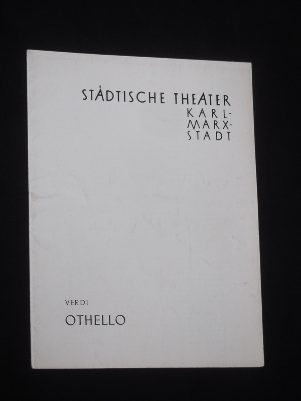 Programmheft Städtische Theater Karl-Marx-Stadt 1957/ 58. Oper OTHELLO nach Shakespeare von Boito, Verdi (Musik). Musikal. Ltg.: Siegfried Franze, Insz.: Adolf Savelkouls, Bühnenbild: Dr. Willi Eylitz, Kostüme: Renate Müller, techn. Einr.: Günther Oppel. Mit Heinz Kraayvanger (Othello), Alfred Krohn, Lothar Burkhardt, Julius Volbers, Werner Melzer, Renate Härtel, Irmgard Kunze-Becker