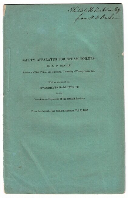 Safety apparatus for steam boilers . with an account of the experiments made upon it, by the ccommittee on explosions of the Franklin Institute [wrapper title]