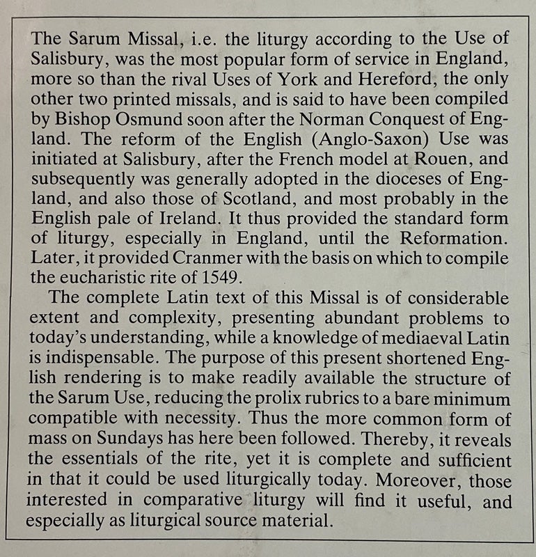 The Sarum Missal Missale ad Usum Insignis et Praeclarae Ecclesiae Sarum. [Said to be complied by Bishop Osmund soon after the Norman Conquest]