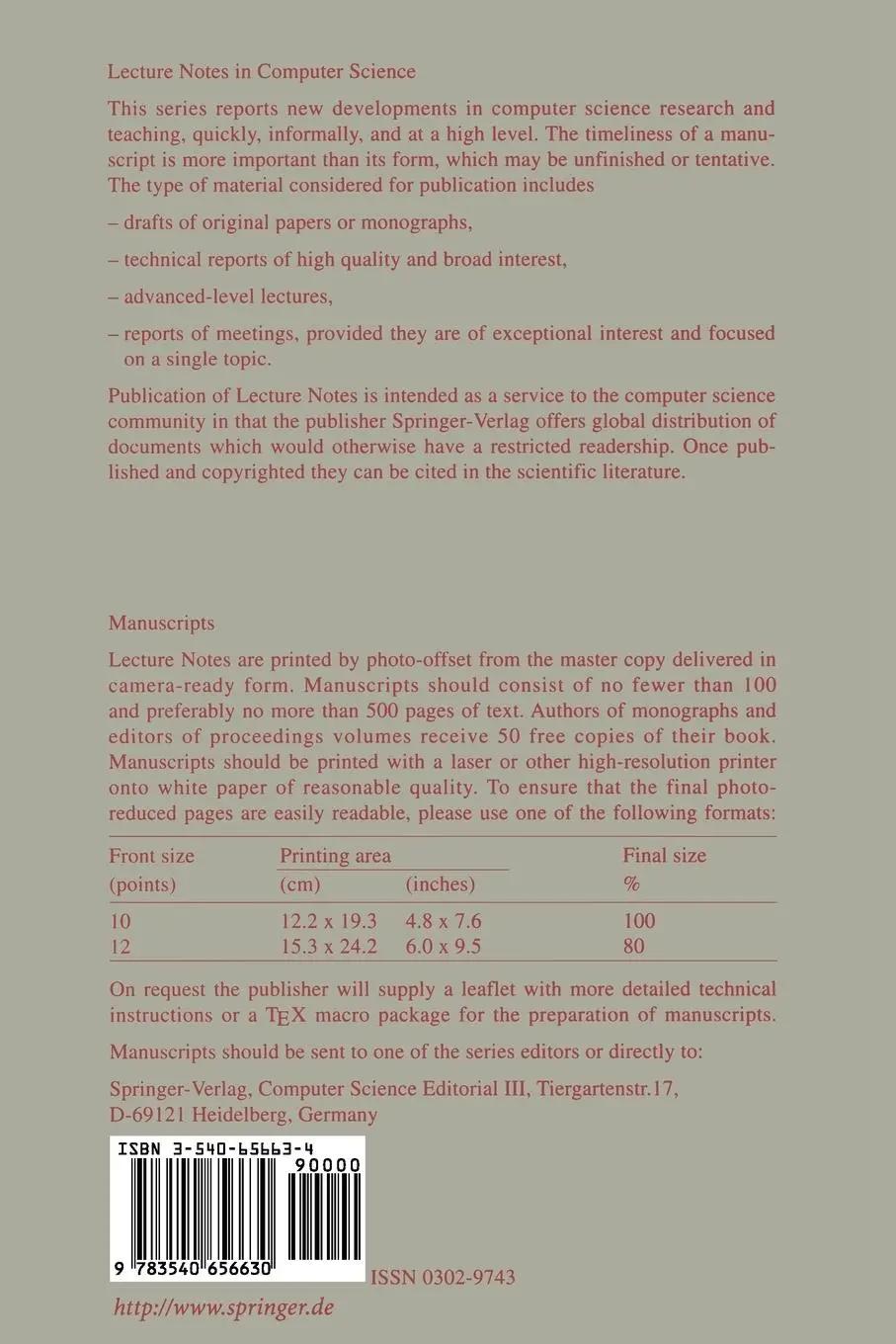ISBN 10: 3540656634 ISBN 13: 9783540656630