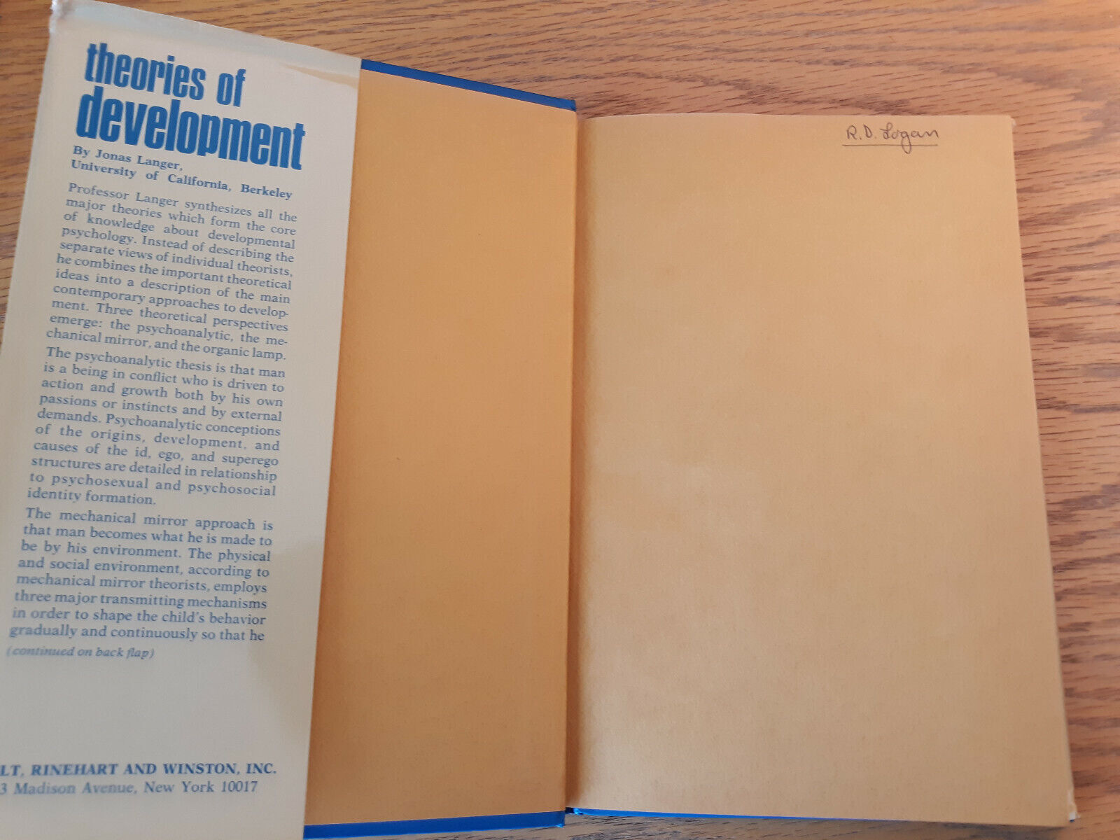 Theories Of Development Jonas Langer 1969 Hardcover Dust Jacket Holt, Rinehart A
