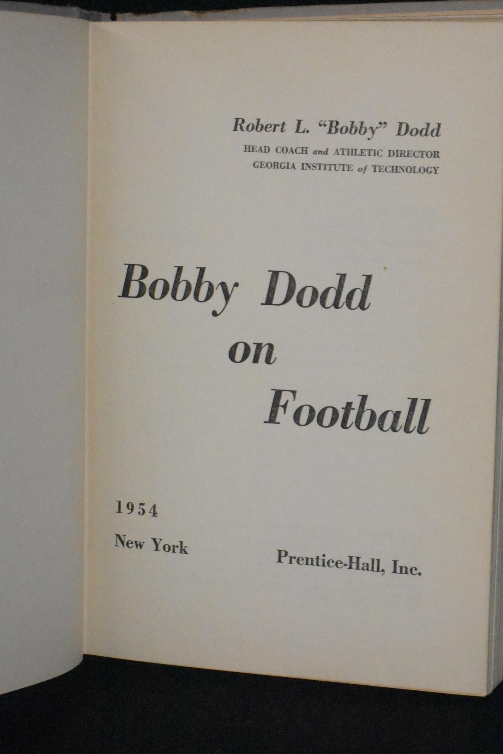 Add to basketPrentice-Hall, New York. 1954. Hardcover. First Edition (NAP). Book is tight, square, and unmarked but for a F/O name and address on the FFFP/person was a prominent football coach at Winfield High School 1950s to 1980s. Book Condition: Fair; boards show considerable biopredation to edges, head, and tail. No DJ. Gray cloth boards and spine with black and gold lettering on the spine and front board. Clean internals. Inner hinges are sound and not split. 344 pp 8vo. Bobby Dodd was an outstanding football player for the University of Tennessee (1928-1930). After he graduated, he eventually became the head coach of the Georgia Institute of Technology, better known as Georgia Tech. Dodd led the Yellow Jackets to a national championship in 1954, and many of his coaching techniques are still in use today. This book is full of photographs and Xs and Os diagrams that support his winning ways at Georgia Tech. He gives advice on everything from the psychology of football to purchasing uniforms. An internally clean copy that is a good reading/studying book or just one to fill a hole one's collection.