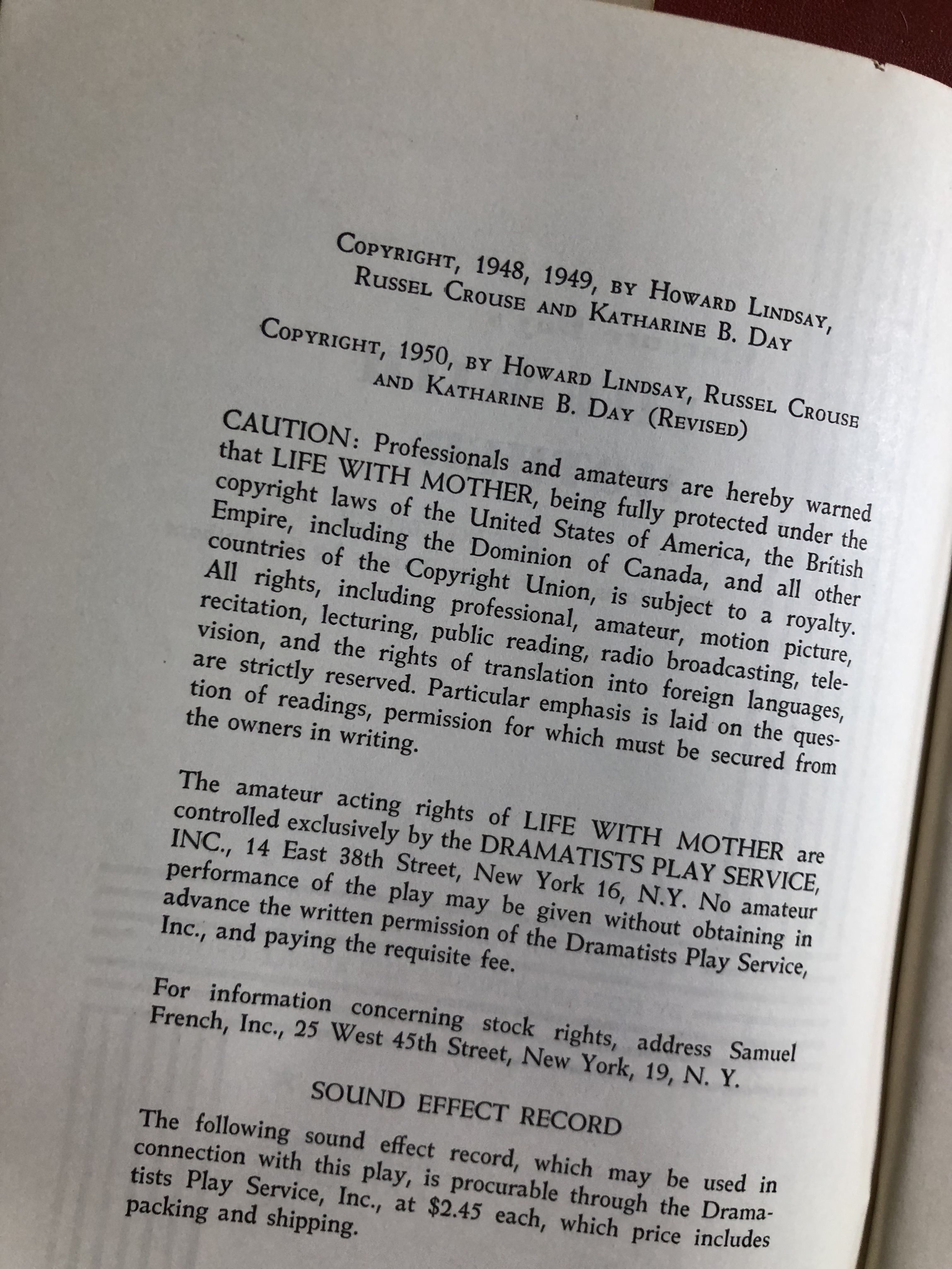 Published by Dramatist's Play Service, 1950