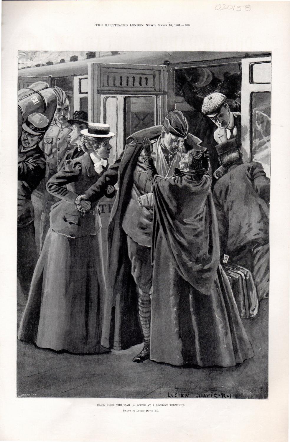ENGRAVING:'Back From the War: A Scene at a London Terminal' .from The Illustrated London News, March 16, 1901