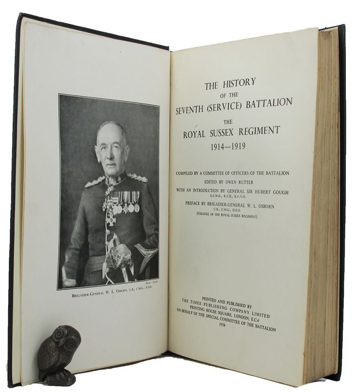 Compiled by a committee of officers of the battalion. Edited by Owen Rutter, with an introduction by General Sir Hubert Gough, preface by Brigadier-General W. L. Osborn. Pp. xx+348(last blank), frontispiece, 7 plates, 22 full page maps, large folding coloured map at end, lightly creased and foxed, fore-edges browned and split, tear into blank panel, not affecting image, Battle Honours, appendices, index; roy. 8vo; later black cloth, spine lettered and ruled in gilt; later endpapers; some light soiling, some fore-corners creased, light brown staining to several leaves (heavier on ten); The Times Publishing Company, London, 1934. First edition. Sutcliffe 1/p. 220. Seller Inventory # 153019