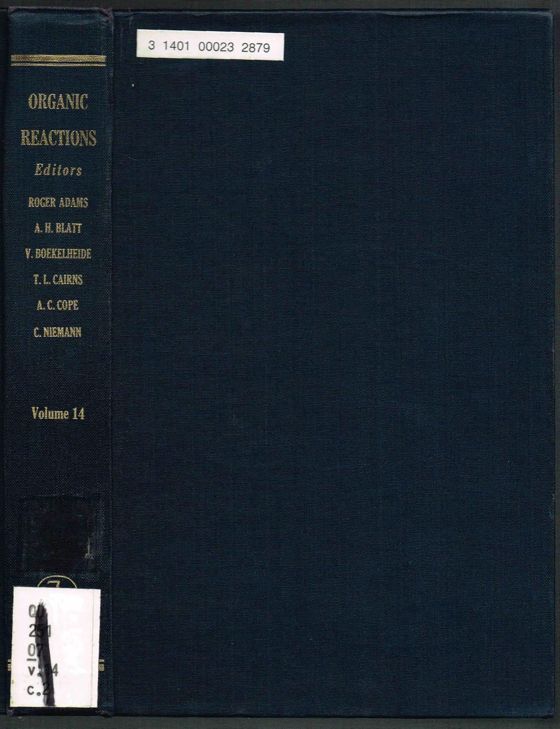 Cope, Arthur C.; Adams, Roger; Boekelheide, Virgil; Blatt, A. H.; Cairns, T. L.; Niemann, Carl (The Late) (Eds); et.al.