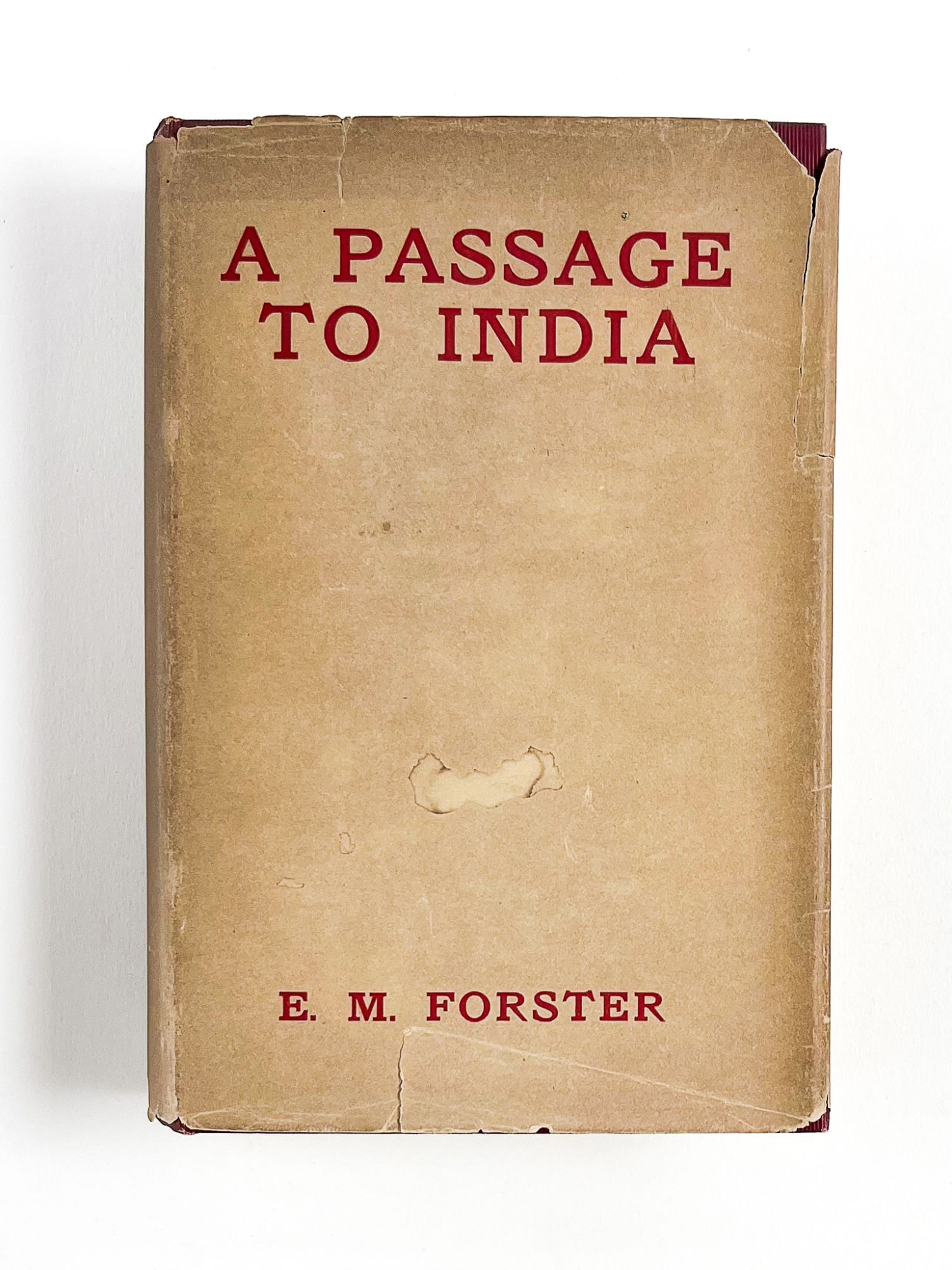 Add to basketFirst edition, in the rare original dust jacket, of this acclaimed book set in British colonial India during the rise of the Indian independence movement ? often numbered among the greatest novels of the 20th century. A PASSAGE TO INDIA was the product of Forster's longstanding interest in India, intensified by his close friendship with Syed Ross Masood, vice chancellor of Aligarh Muslim University in Uttar Pradesh, and grounded in his own travels through India in 1912 and his 1921 position as private secretary to the Maharajah of Dewas (both later described in THE HILL OF DEVI). The most successful of Forster's novels, it inspired a 1960 Forster-approved play by Santha Rama Rau as well as the 1984 film by David Lean, and was awarded both the James Tait Black Memorial Prize and the Prix Femina Vie Heureuse. A major work on many a collector's list, it is especially sought in the original dust jacket. 7.5'' x 5''. Original red cloth, spine and front board lettered in black. In original (7/6 net) typographic dust jacket. Publisher's ads at rear. 325, [3] pages. Jacket with a few chips to spine ends and corners, fairly toned especially at spine, a few short closed tears and one longer closed tear to front fold. Book a trifle dusty with spine somewhat darkened, leaves toned. Hinges firm. Very good plus in very good minus jacket.