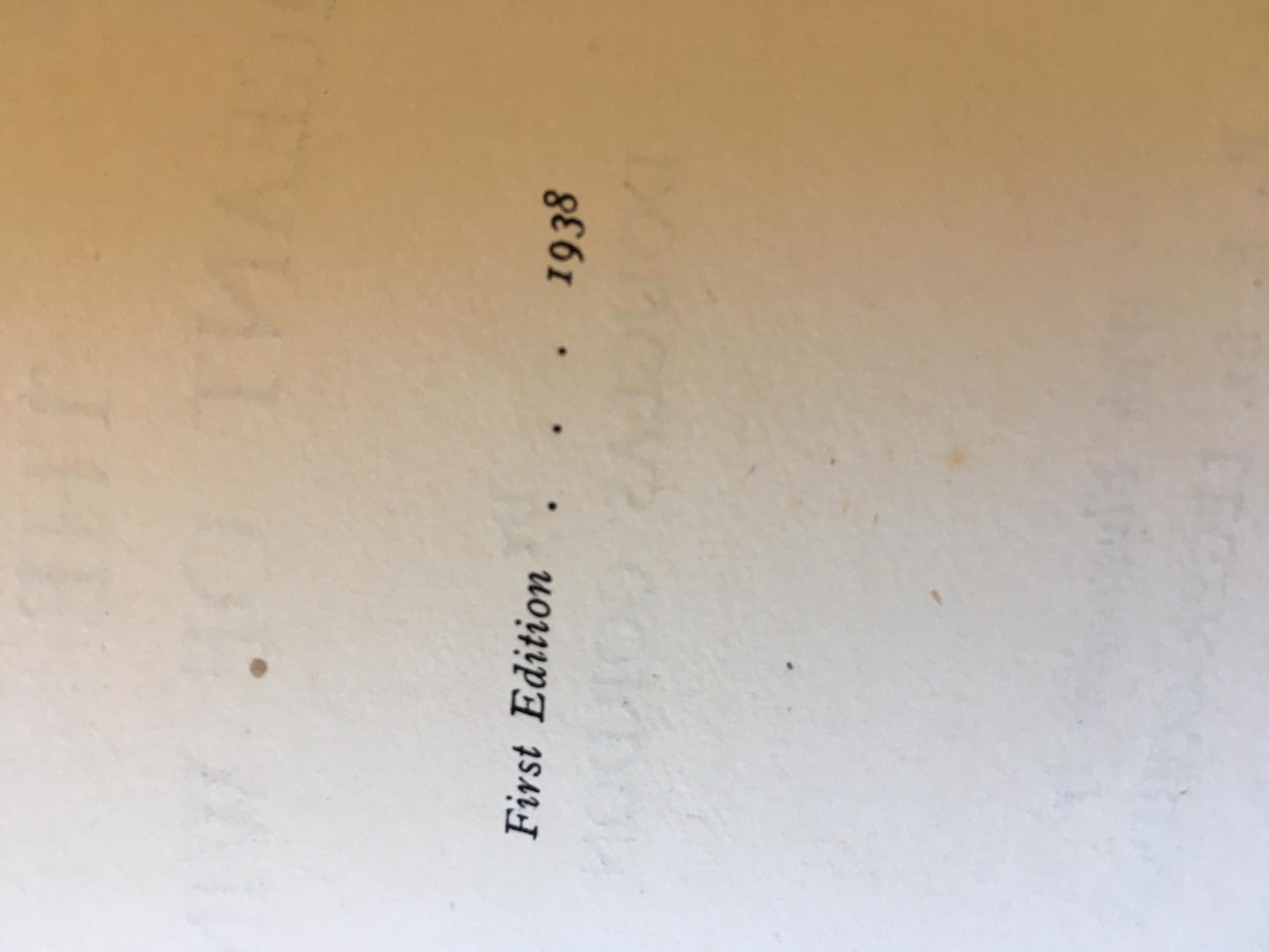 Add to basket1938 first edition hardback in good condition. Scarce. A little spotting to page edges, no other marks, clean and bright, tight binding. The green cloth boards have a few marks, mainly to spine, but all is quite solid, neat and tidy. In its original, unclipped dust wrapper with a few marks to faces, rubbing to edges and tanning to spine, but still perfectly functional. Items are dispatched the same or the following working day. Please note our excellent customer feedback.