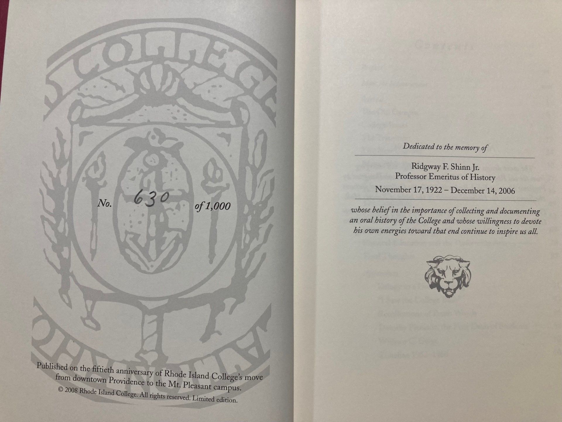 Published by Rhode Island College, Providence, Rhode Island, 2008