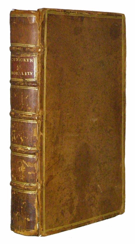 1 blank leaf + engraved frontispiece + TP + iii-xii = The Preface + [xiii]-[xx] = The Contents + 1-303 + [304] = publisher's ads + 1 blank leaf, Octavo. First Edition. Cudworth's "Best-Known Contribution to Moral Theory"This treatise was published posthumously (Cudworth died in 1688) from a manuscript belonging to the author's grandson, Franics Cudworth Masham and edited by Edward Chandler. It is the second part of Cudworth's major treatise on liberty and necessity, the first being his True Intellectual System of the Universe (1678) and the third A Treatise on Freewill (1838). This work "is the fullest statement of epistemology produce by any of the Cambridge Platonist. Arguably it constitutes the most important statement of innate-idea epistemology by any British philosopher of the seventeenth century. The fundamental ethical question posed in A Treatise concerning Eternal and Immutable Morality is that posed in Plato's Euthyphro: whether things are good because the gods will them to be good, or whether the gods will them because they are good." [Sarah Hutton in Dictionary of Seventeenth Century British Philosophers] The Encyclopedia of Philosophy refers to this work as "Cudworth's best-known contribution to moral theory." (Vol. II, p. 272) Contemporary speckled calf. Double gilt rule to front and back covers. Spine with five gilt bordered raised bands and burgundy morocco label with gilt lettering. Small, dark and faded library label at foot of spine (all but impossible to see). The front joint is cracked, but extremely firm. Some terior pages browned but overall a very pretty copy of this surprisingly uncommon book. ADDITIONAL PHOTOS AVAILABLE UPON REQUEST.