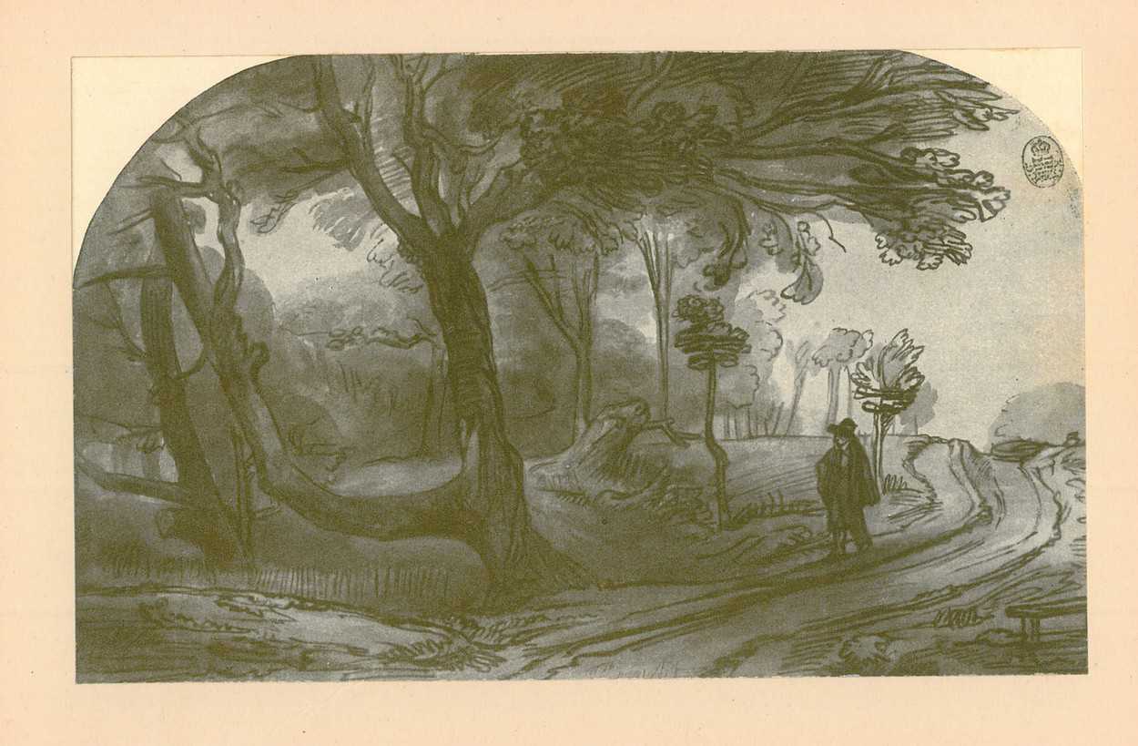 Add to basketPrint after a drawing: A man walking along the edge of a forest. Photolithography by Anonymous, after Abraham Furnerius (1628-1654), c. 1920. Good condition. Lacking marings (as issued) and mounted onto contemporary paper. Note: after a drawing that was originally attributed to Rembrandt, but currently to Abraham Furnerius (1628-1654). Note: the original drawing is held in the collection of the Kupferstich-Kabinett in Dresden. Dimensions: 85 x 138 mm. Catalog reference: Hofstede de Groot, no. 281, copy. c. 1920.