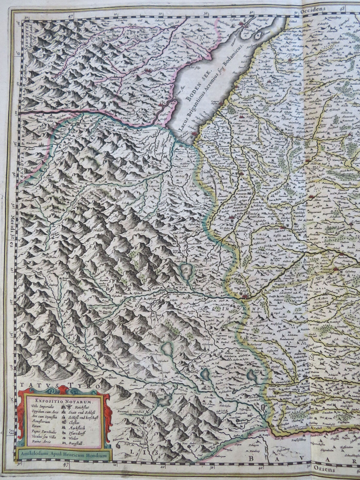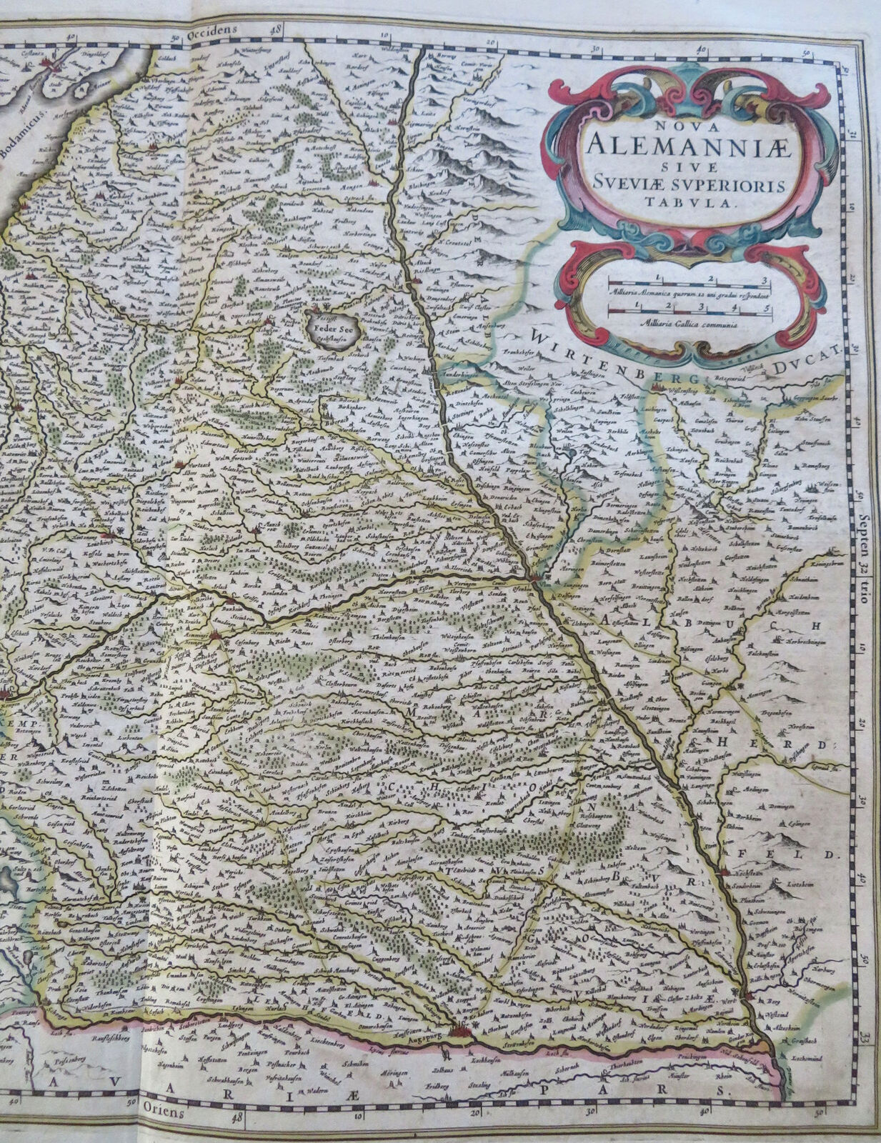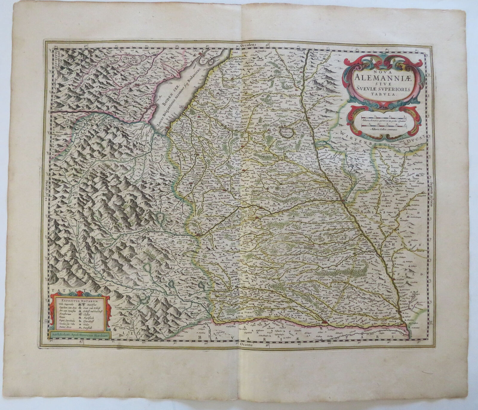 Southern Germany Upper Swabia Boden Sea Switzerland Danube 1644 Hondius map