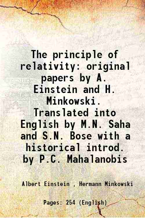 Albert Einstein, Hermann Minkowski, M. N. Saha(Tr.), S. N. Bose(Tr.), P. C. Mahalanobis(Intro.)