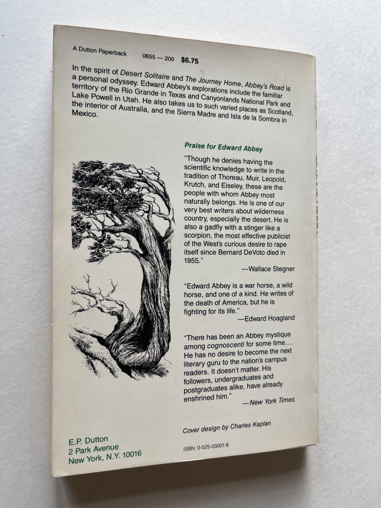 Add to basketThird printing (number line ending in 3), inscribed on the first blank: "To Kip, All the best! Edward Abbey, October 1992." His name is in blue pen, but the rest is in black, suggesting this book was signed at an earlier date and the rest of the inscription was filled in at another run-in with Abbey. Near fine, with a clean white wraps with just a hint of toning to edges and a bit of lift to lower right corner of the front cover (not a curl, per se). The tiniest of nicks to upper spine. Nice copy of an ivory book that's hard to find without soiling.