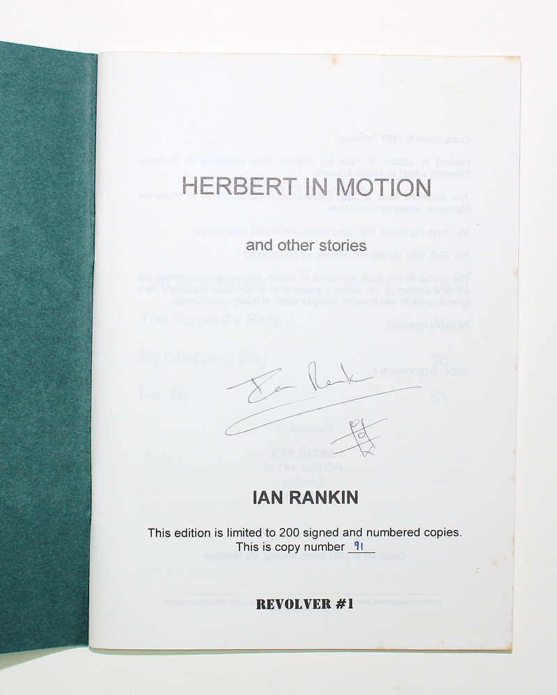 1st Edition 1997. First edition, first printing. Signed Limited Edition of 200 this being number 91. Signed by Rankin and a doodle of naughts and crosses. A scarce Rankin item with a Rebus story. 64 pages. As issued, in the publisher's original dark green stiff card wrappers, stapled, with photographic onlay to upper. The softcover book is near fine with bright boards. Light foxing to page edges. Contents good. More images can be taken upon request. Ref17514. Seller Inventory # 025962